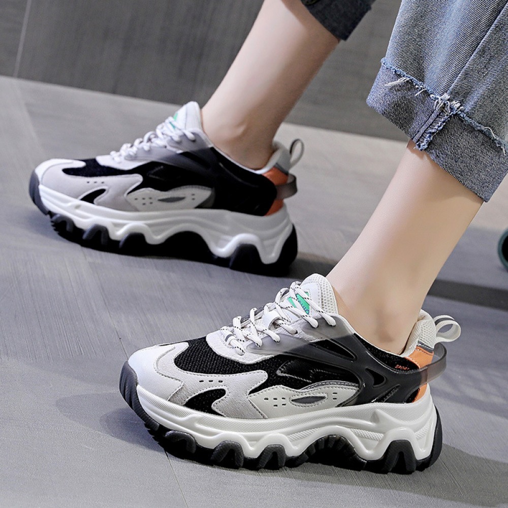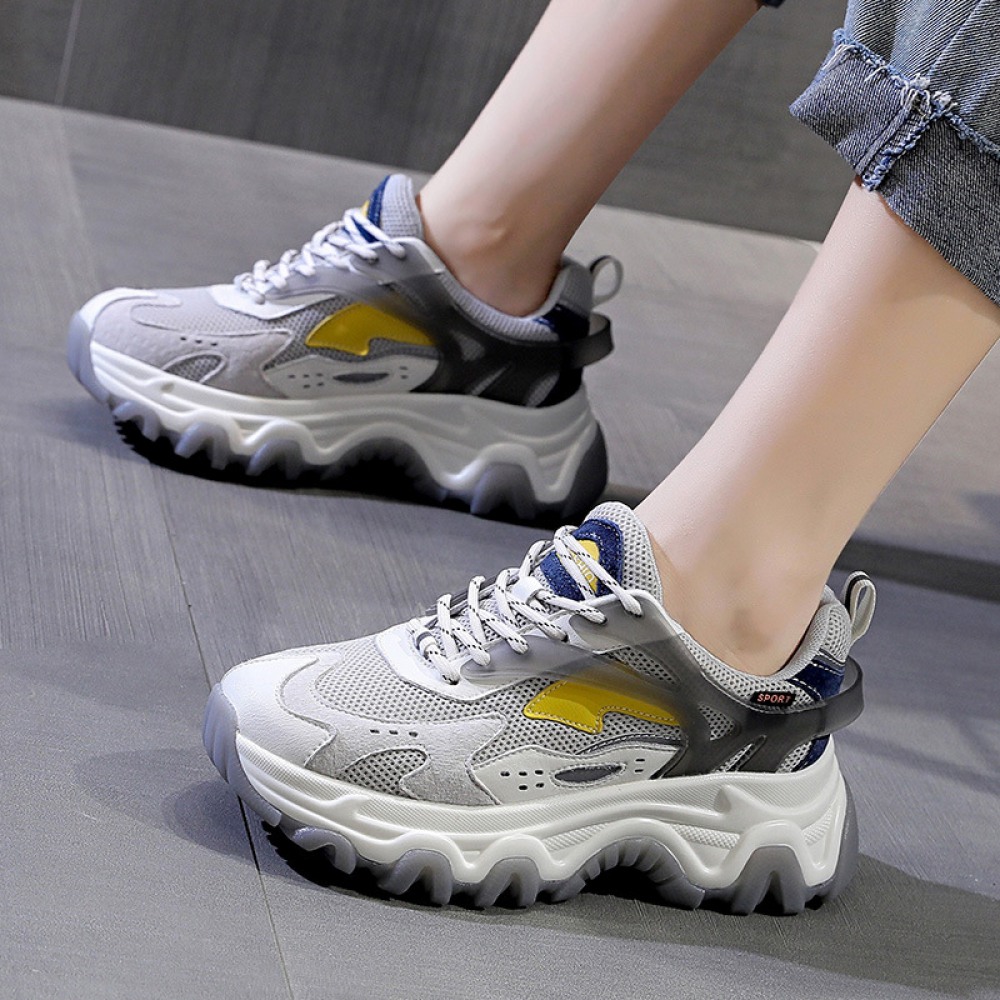 Women's Autumn Mesh Trendy Shoes Reflective Thick-Soled Increased Casual Sports Women's Shoes