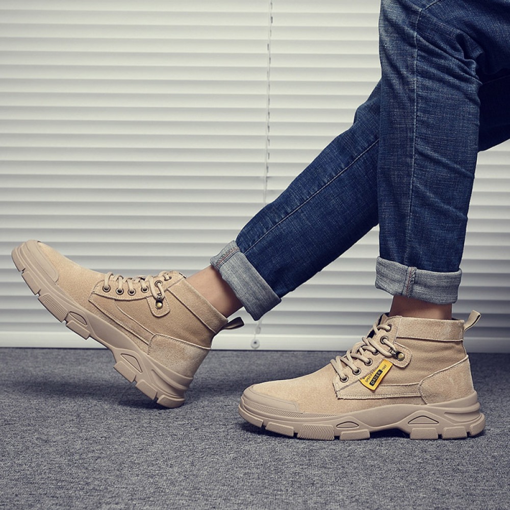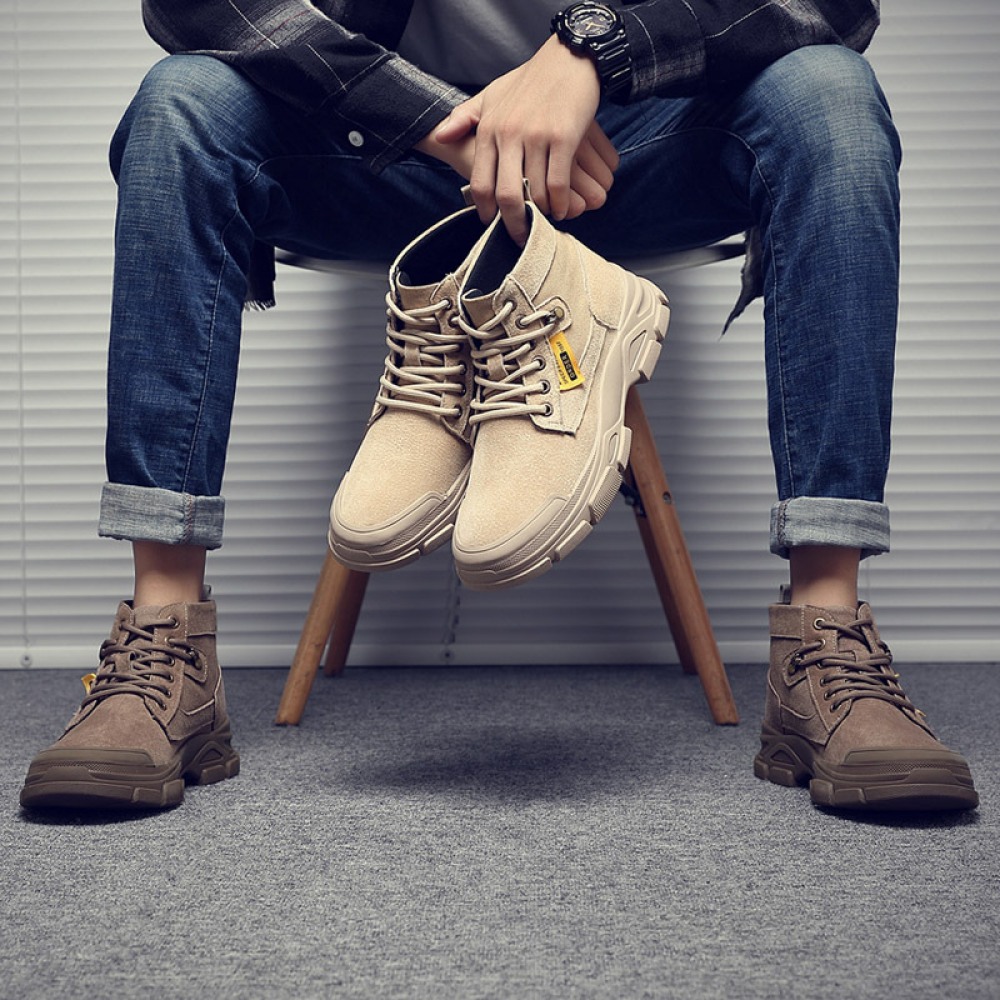 Martin Boots Men's British Style Tooling Boots Mens Autumn Trend High-Top Shoes Casual Breathable Short Boots